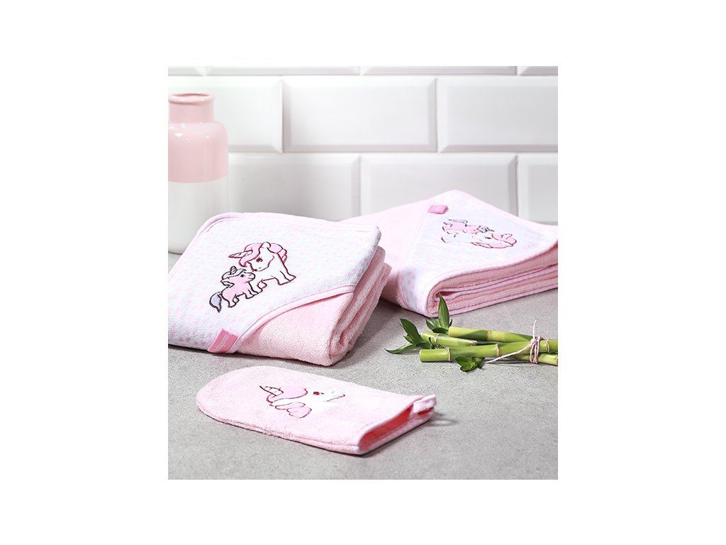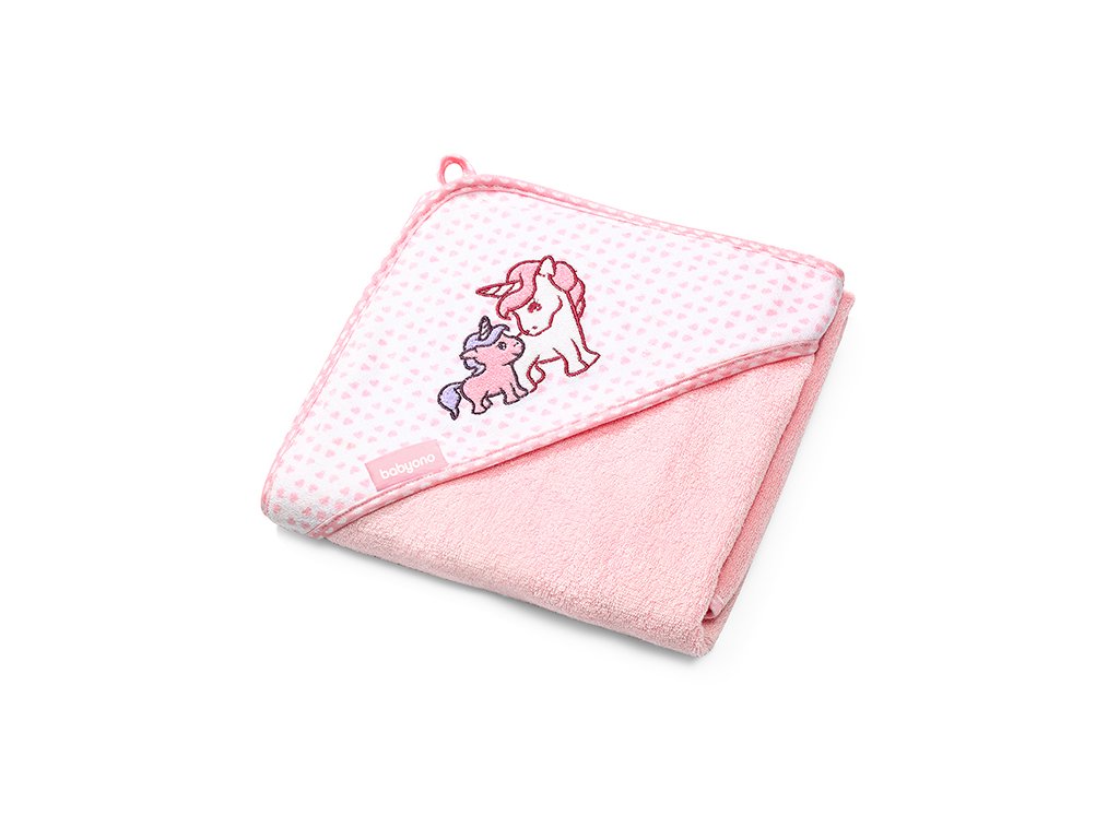 Babyono Bambusová osuška s kapucňou ružová jednorožec 100x100 cm