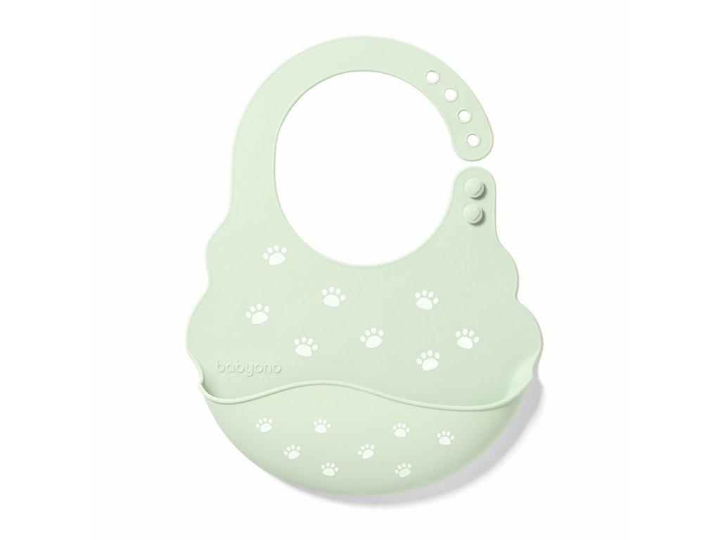 Babyono Silikónový podbradník s nastaviteľným zapínaním mint labky