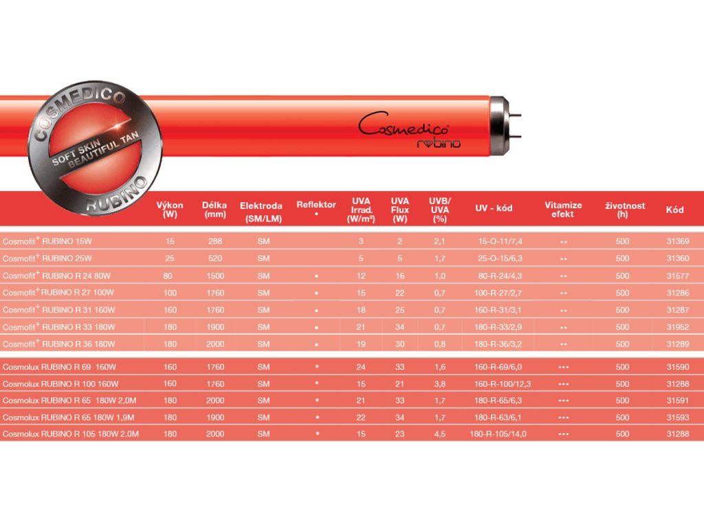 Cosmedico Cosmofit+ RUBINO R36 180W, 2m, 650h, 31289, trubica do solária s kolagénom