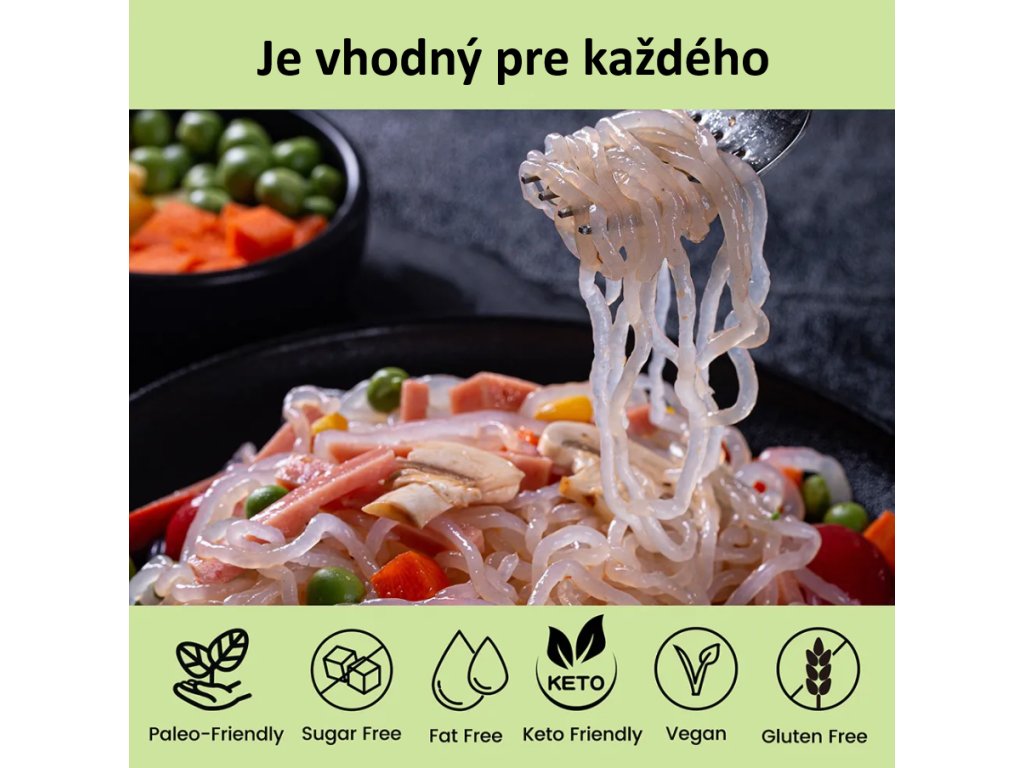 Predstavte si 6 kalórií na 100 gramov produktu, ktoré pomáhajú tráveniu a majú nízky obsah sacharidov. Špagety sú hotové len za 2 minúty a môžete si ich pridať do svojich obľúbených polievok, šalátov, omáčok a ďalších jedál!