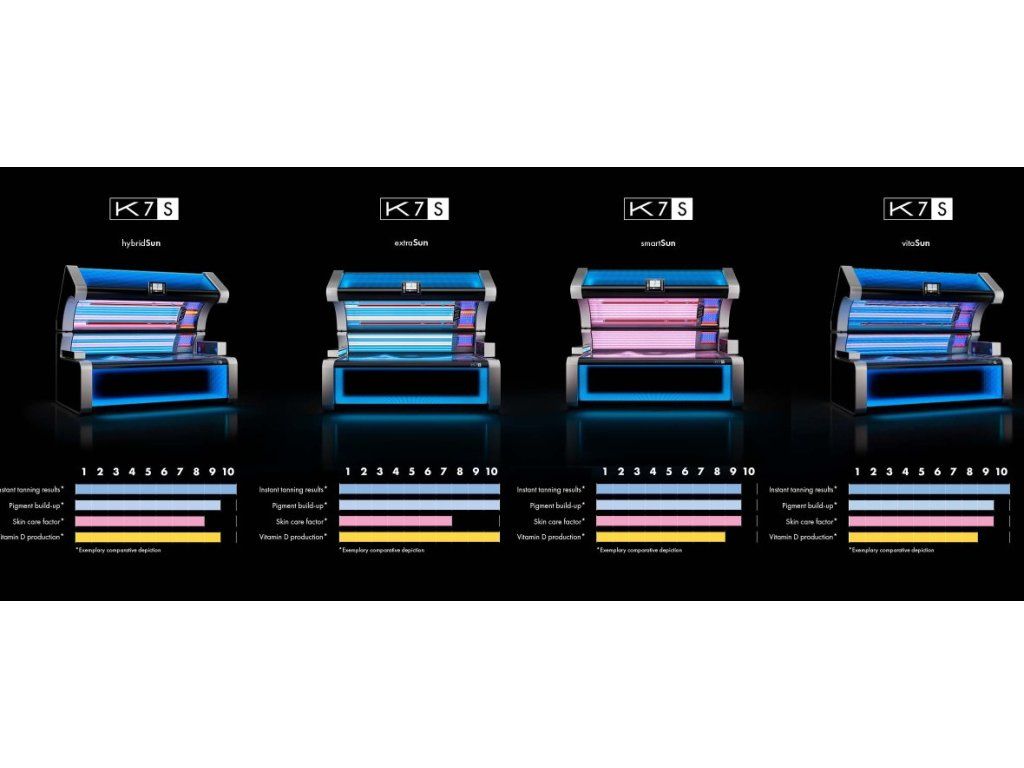 Model je dostupný v dvoch variantoch: K7 a K7S. Hlavný rozdiel spočíva v type lámp použitých na opaľovanie tváre.